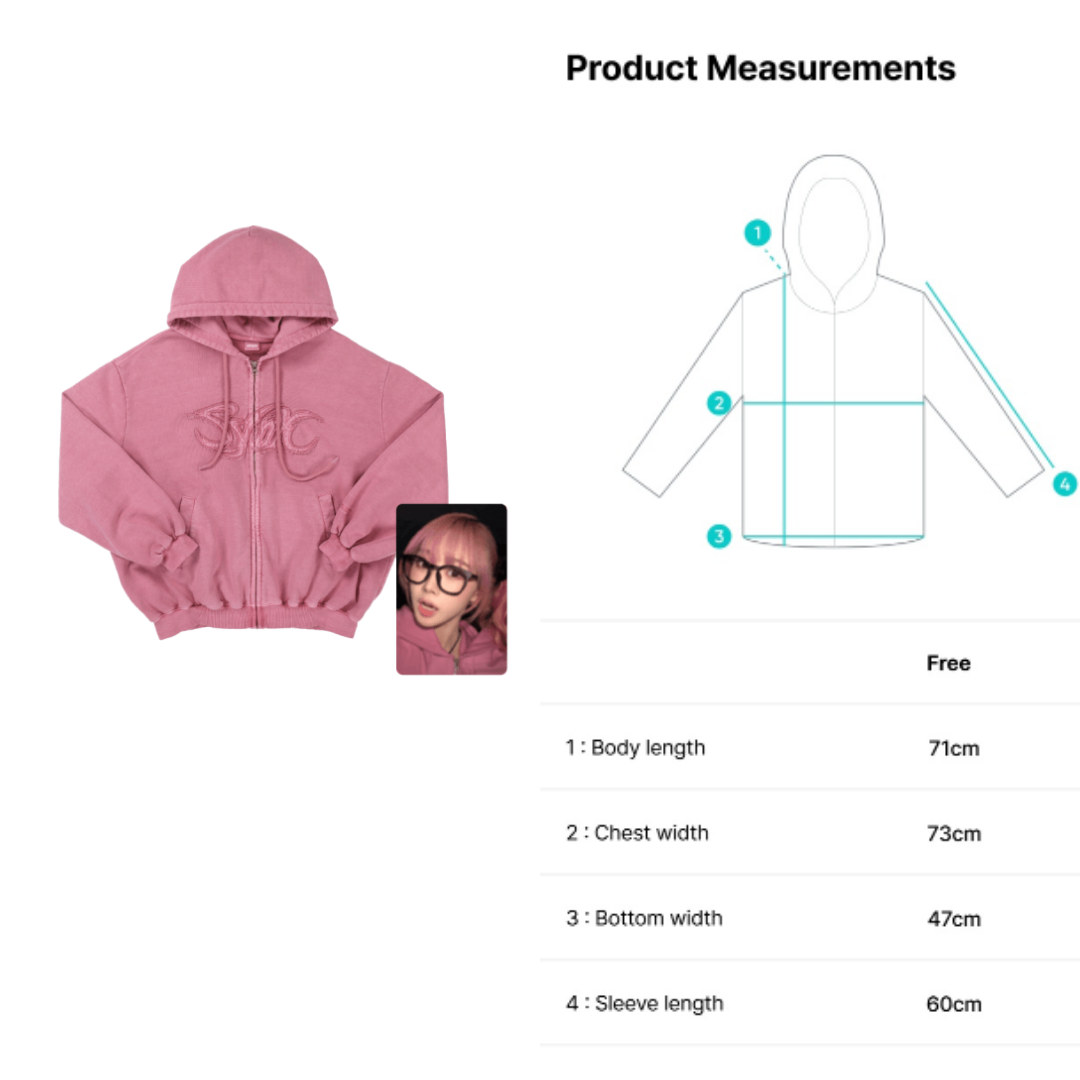 Size chart for PINK HOODIE ZIP-UP SET