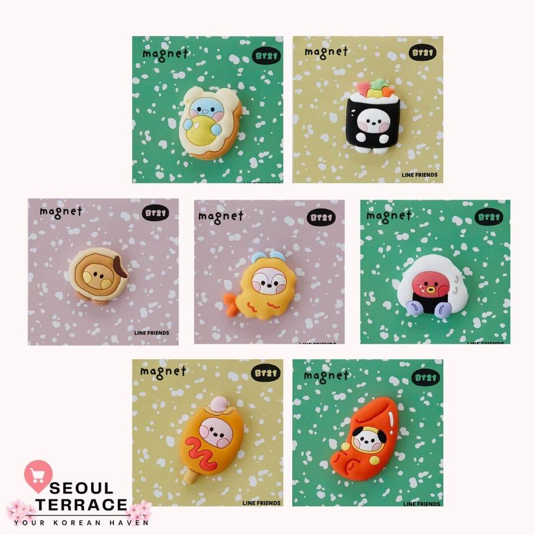 The BUNSIK collection by BT21 features adorable, food-themed merchandise inspired by Korea's popular street food culture. Each BT21 character is reimagined in a playful, bunsik style, featuring vibrant colors and fun designs.