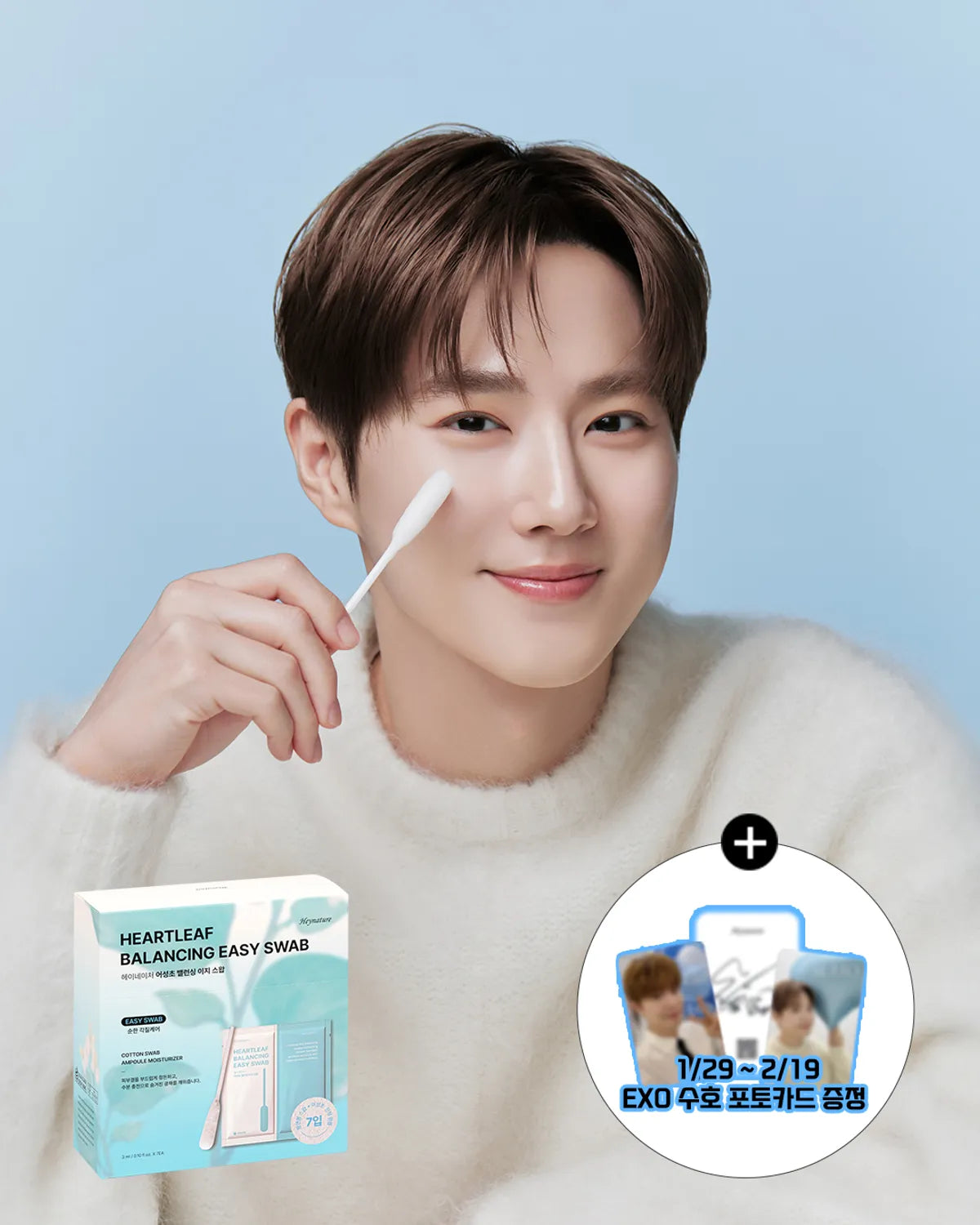 [Exo Suho Pick] Heynature Heartleaf Balancing Easy Swab with Gift (Photocard )