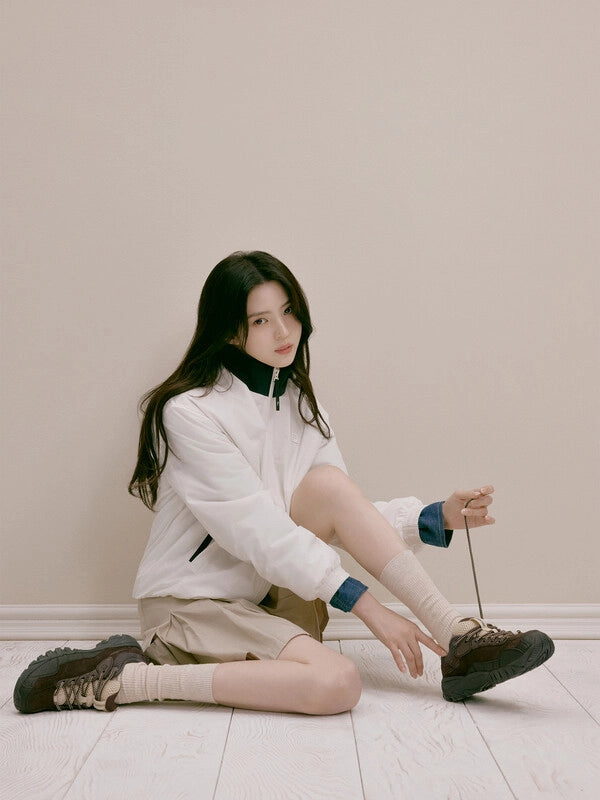It reinterprets the iconic track jacket design in padded style and comes in three color options: signature white and navy, and trendy brown.