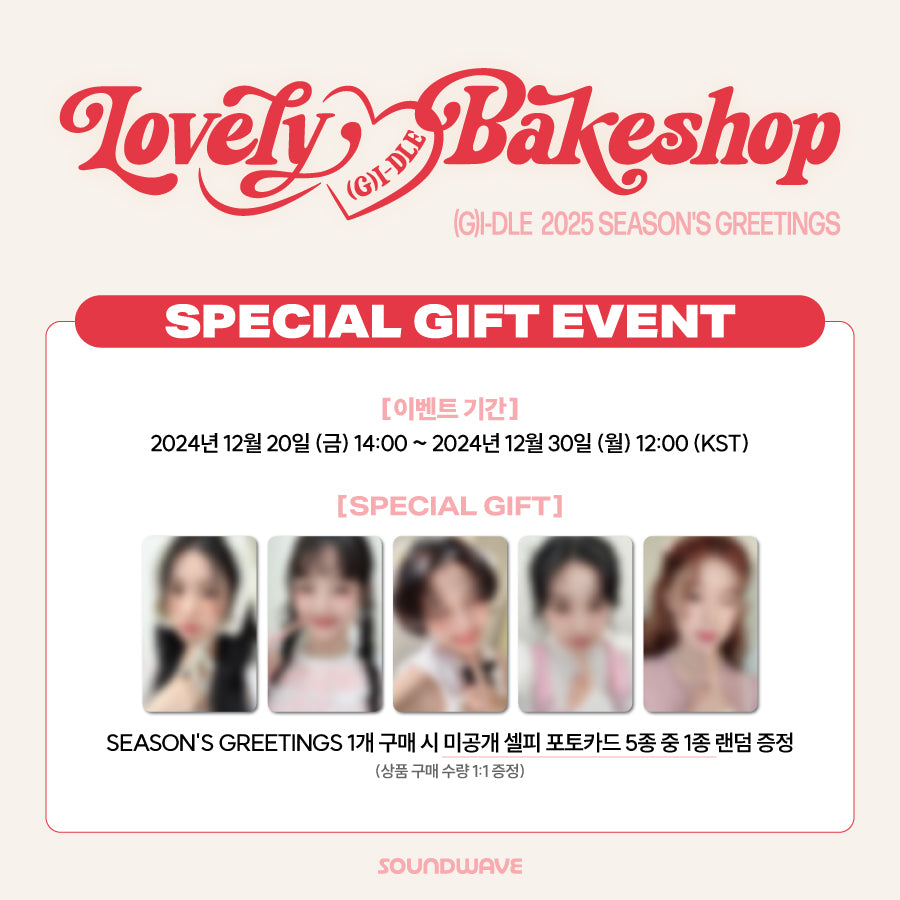 ![(G)I-DLE - 2025 SEASON'S GREETINGS [Lovely Bakeshop]](http://seoulterrace.com/cdn/shop/files/POB.jpg?v=1734679773&width=1445)