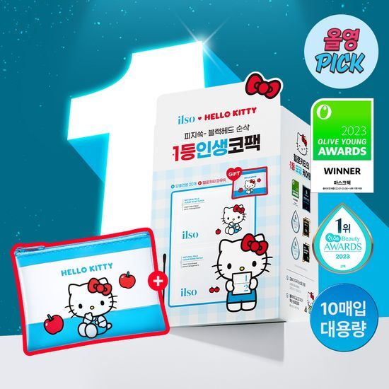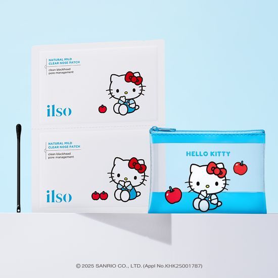 [Hello Kitty X Ilso Natural Mild Clear Nose Pack 10 Sheets (+Hello Kitty Pouch + 20 Extruded Cotton Swabs)