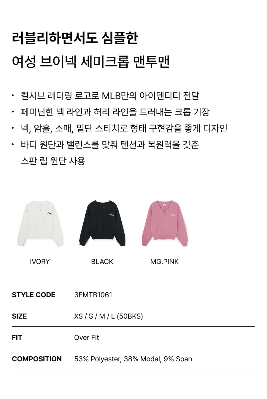 [Ive Gaeul Worn] MLB Women's Basic V-Neck Semi-Crop Sweatshirt LA Dodgers