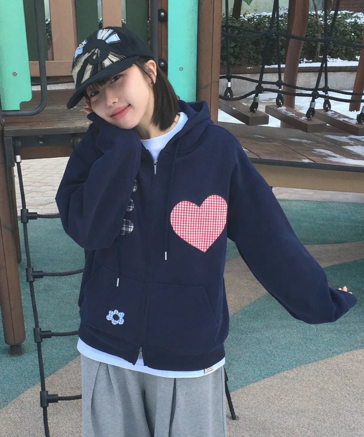Double the fun with this cheeky two-way hooded zip-up that refuses to pick a side. Flip it, wear it, love it—this jacket gives you two completely different vibes in one piece.